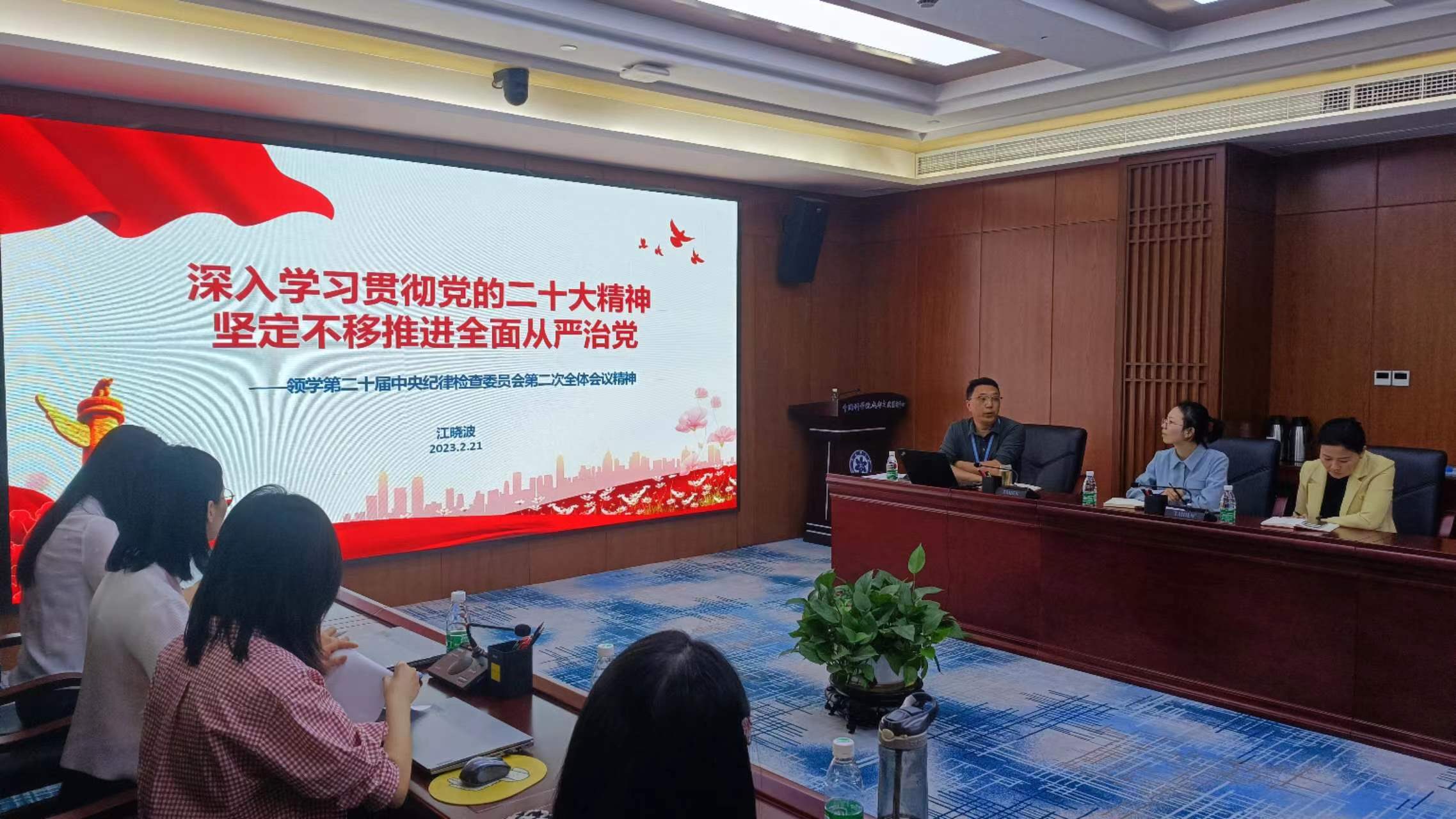 江晓波首先作题为《深入学习贯彻党的二十大精神 坚定不移推进全面从严治党——领学第二十届中央纪律检查委员会第二次全体会议精神》的党课。他重点传达了习近平总书记在二次全会上的重要讲话精神。他要求第二党支部全体党员要深刻领悟“两个确立”的决定性意义,进一步增强“四个意识”、坚定“四个自信”、做到“两个维护”,一刻不停推进全面从严治党和党的自我革命。