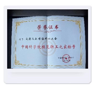 为加强基层工会建设,表彰先进,树立典型,中国科学院工会组织开展了中国科学院模范职工之家、模范职工小家、优秀工会工作者、优秀工会积极分子、优秀工会之友、荣誉工会工作者等评选活动。成都文献情报中心工会的工作得到了中国科学院工会、成都分院工会和中心职工的广泛认可,最终荣获“中国科学院模范职工之家”称号。