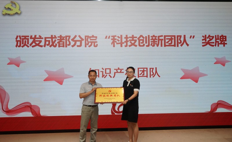 中心主任、党委副书记邓勇向马伊丽等8位同志颁发“共产党员示范岗”。中心副主任房俊民向获得中国科学院成都分院“科技创新团队”荣誉称号的知识产权团队授牌。