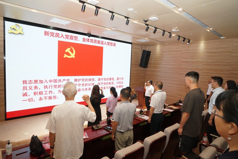 曲建升带领2023年新发展党员进行入党宣誓,全体参会党员重温了入党誓词。入党誓词不仅是全体党员的行动指南,也是共产党人的座右铭,是共产党人初心和使命的集中体现。通过重温入党誓词,进一步坚定了中心全体党员不忘初心、牢记使命,齐心协力共同为共产主义事业奋斗终身理想信念。