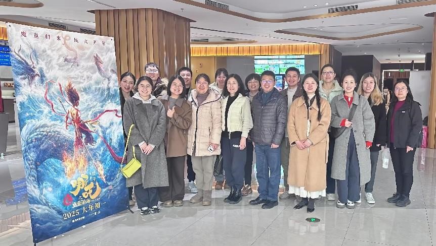 活动伊始,全体党员集中观看了现象级国产动画电影《哪吒2》。电影凭借其对传统IP的现代化重构、技术上的工业化突破以及商业与艺术的完美平衡,成为2025年春节档的一匹黑马,引发了全社会对创新文化的热烈讨论。导演饺子带领全国4000余名动画人“垫脚触碰创作天花板”的历程,展现了中国动画从代工模式向自主创新转型的决心。这种十年磨一剑的攻坚精神深深打动了在场的每一位党员,激发了大家对创新与坚持的深刻思考。