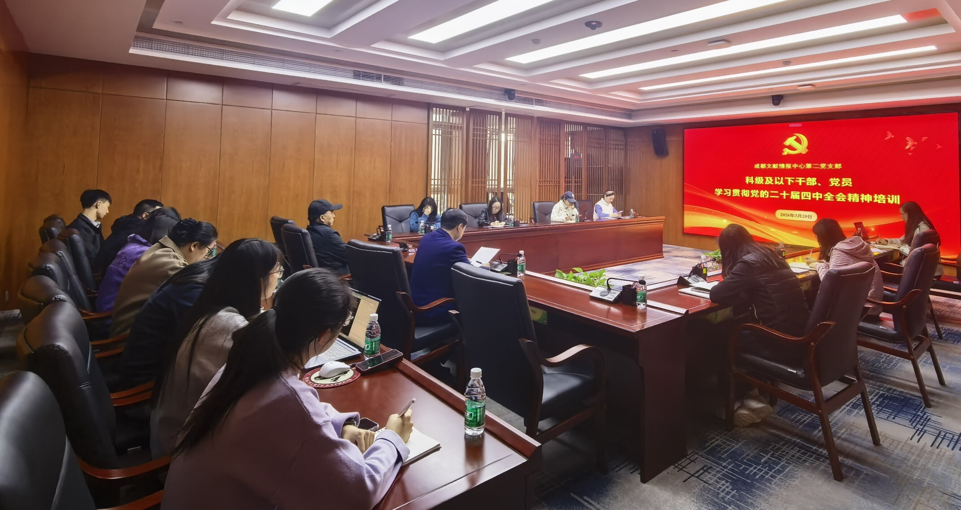 3月25日,成都文献情报中心第二党支部举办科级及以下干部、党员学习贯彻党的二十届四中全会精神培训。