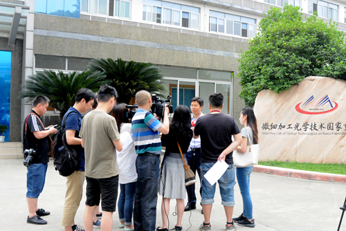 5月20日,中科院成都分院以“探索塑造未来”为主题的公众科学日在光电所启幕。来自科技日报、人民日报数字传播、四川卫视、四川电视台科教频道、成都电视台等9家媒体12人次参加开幕式。