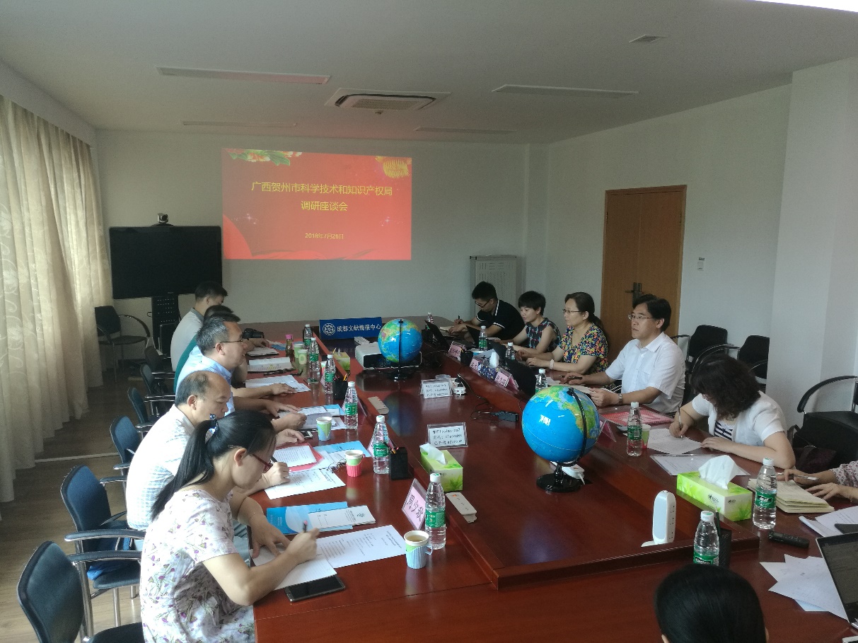 7月26日上午,广西贺州市科学技术和知识产权局局长潘顺康、副局长谢海明一行6人访问中科院成都文献情报中心,双方就科技信息服务合作项目举行座谈会议。成都文献情报中心主任张志强和副主任杨志萍以及项目研究人员参加座谈会。张志强主持座谈会。