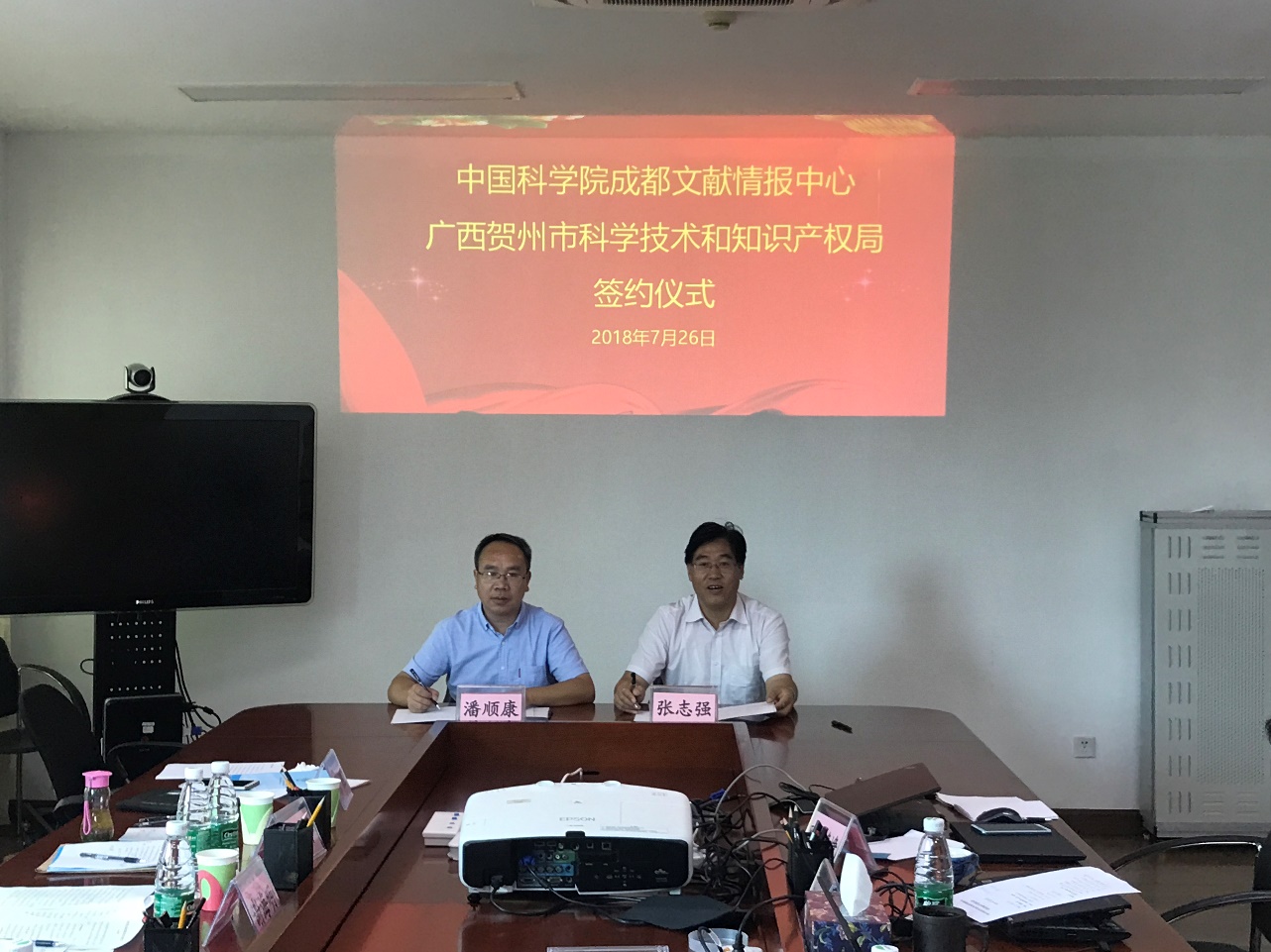 广西贺州市科学技术和知识产权局访问成都文献情报中心并签订合作协议
