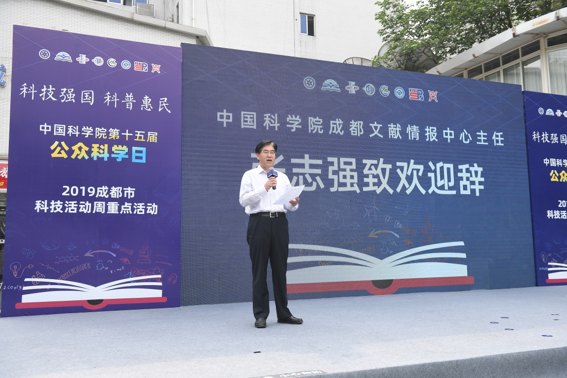 中心主任张志强代表组委会致欢迎辞。张志强表示,习近平总书记关于科技创新与科普工作的一系列重要论述,对于在新的历史起点上推动我国科学普及事业的发展意义重大??蒲刂适枪袼刂实闹匾槌刹糠郑罅μ岣吖窨蒲刂?,才能厚植科技创新的社会文化土壤,这对于提高国家自主创新能力,建设创新型国家乃至科技强国的重要意义不言而喻??破帐谴葱滦凸医ㄉ璧闹匾е叶泳鸵碌?破展抑稹!爸锌圃汗诳蒲铡本褪侵锌圃杭忧抗诳蒲Тセ疃摹肮愣嬷钡男?。中国科学院作为我国建成创新型国家和建设世界科技强国的国家战略科技力量,一直都十分重视促进高端科研资源科普化,主动承??破沾ト挝瘢欢洗葱驴破沾ツJ?,为建设创新型社会、学习型社会提供科学文化支撑。中国科学院成都文献情报中心作为中国科学院文献情报系统的主要组成部分,是国内科技文献信息资源最丰富的国家级科学图书馆,是科学知识汇聚的宝库和殿堂,是科技创新和科普教育的信息资源高地。在“创新,开放,协同,跨界,共享,和谐”的发展理念指导下,我们不断探索将高端科研信息资源科普化的方式方法,以促进科学知识的社会化广泛传播和普及。