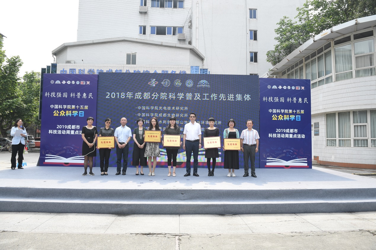 中心副主任杨志萍为求真科学营开营授旗。成都文献情报中心获得了2018年度中科院成都分院科学普及工作先进集体荣誉称号。