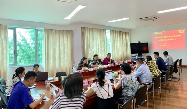 杨志萍首先对邹凡副院长一行来访表示欢迎,并简要介绍了中心的历史沿革、业务框架及近年来在科技智库建设方面取得的成效。邹凡介绍了云南省科学技术发展研究院发展的历史沿革、业务方向和特色能力,重点就“科技支撑经济高质量发展”项目进行了说明。他提出本次调研是学习中心在高端科技智库领域方面取得的经验和先进做法,并希望加强与中心在人才、科技资源、工具平台等方面的合作,提高云南省科学技术发展研究院战略情报水平和能力。