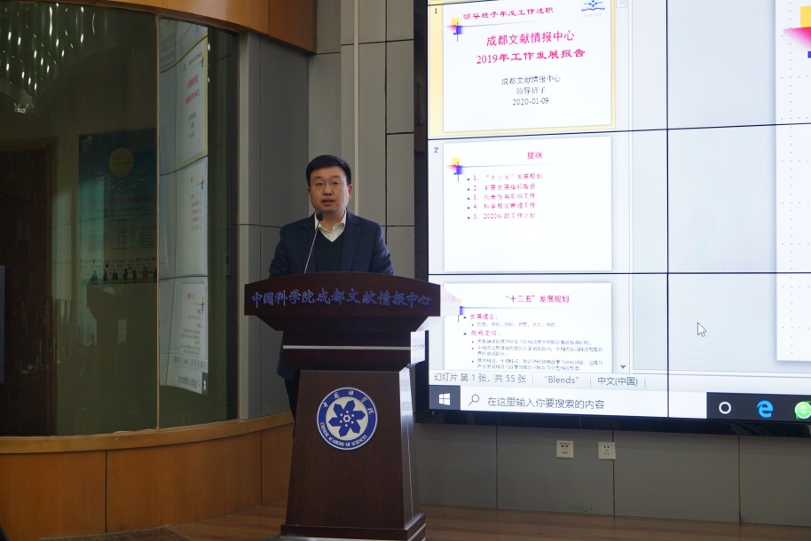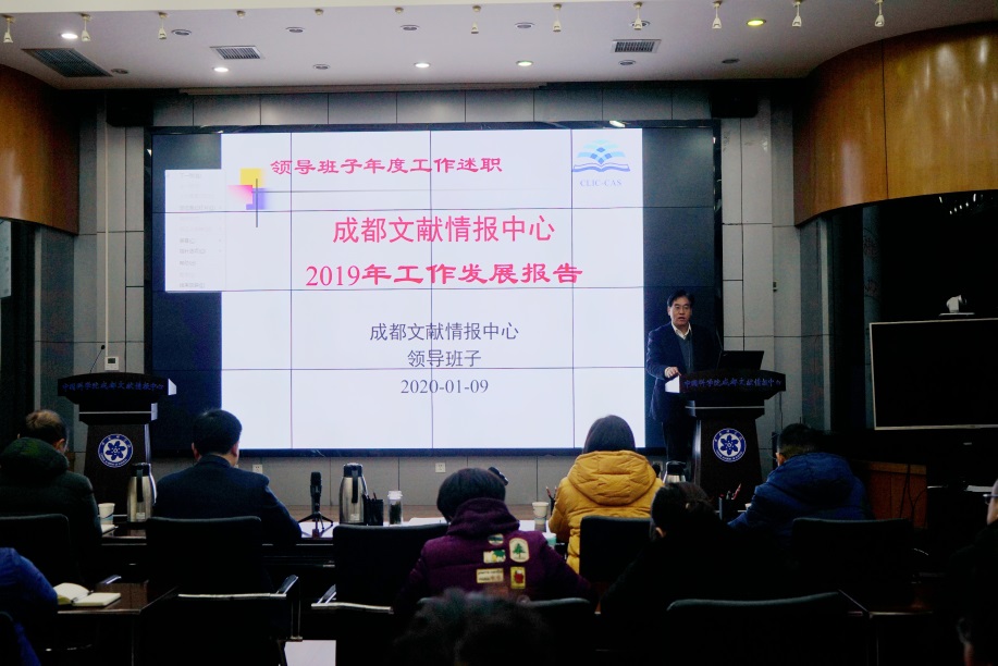 中心主任张志强代表领导班子作了2019年度领导班子工作情况述职报告。张志强在报告中指出,2019年度成都文献情报中心工作发展呈现出以下鲜明特点:智库型发展理念和发展模式更加巩固,建设专业型科技智库从单位发展的战略规划全面转变为职工的共识和单位发展的鲜明目标和有力导向;专业科技智库发展体系得到全面加强,形成由开放研究平台体系、研究团队体系、研究项目体系、大数据信息知识集成平台体系、智库成果产品产出体系、高层次学术论坛体系等构成的“六位一体”的智库发展体系;战略研究决策咨询等知识服务成果产出稳步增加,决策咨询服务重点用户层次明显提高,知识服务领域范围进一步扩展;智库咨询服务的知识和影响力传播工作得到有效加强,决策咨询知识服务效果和社会影响力持续扩大;科学规范化管理与服务取得明显成效,规划计划组织措施有效推进;“不忘初心,牢记使命”主题教育显著成效,全面加强党建与创新文化建设及反腐倡廉各项工作,有力促进了各项工作的全面推进。