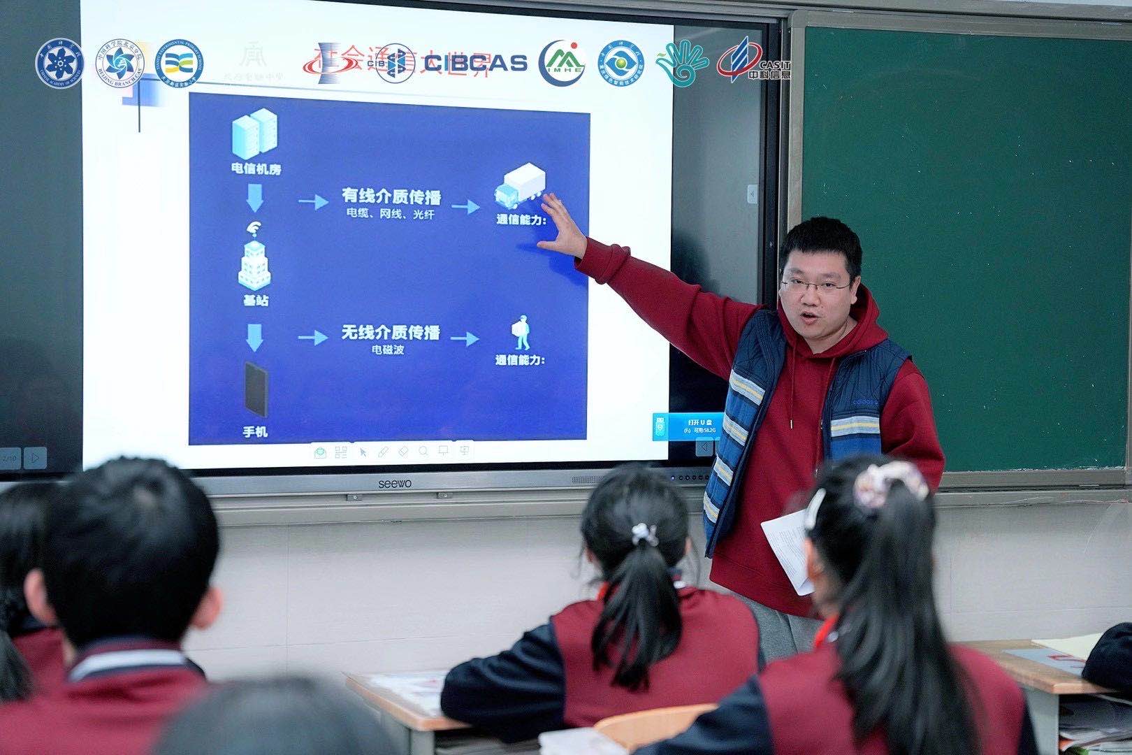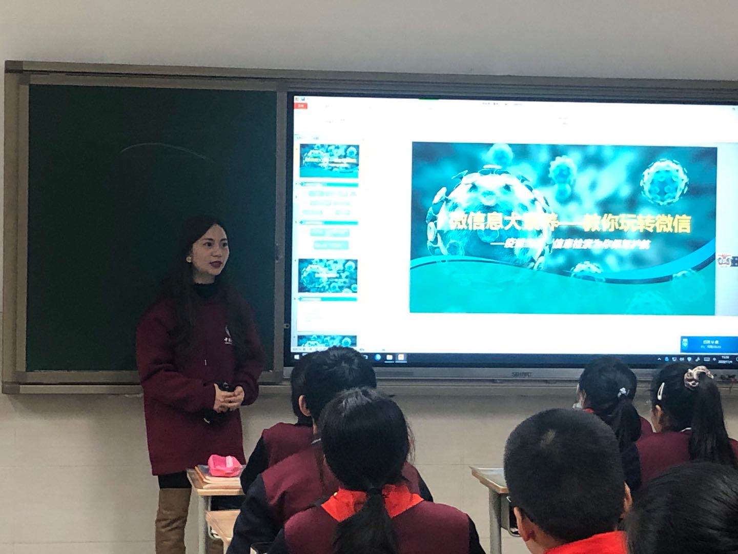 中心科普人员许文娟和杨况骏瑜就时事热点开发制作了科普课程《微信息大素养——教你玩转微信》及《神秘的5G通信》?!督棠阃孀⑿拧芬砸咔槠诩涞男挛盼?,为学生们生动具体地介绍了微信信息源的选择方法和鉴定方法,手把手帮助学生掌握鉴别鱼龙混杂的微信信息的科学方法?!渡衩氐?span>5G通信》简单介绍无线通信与有线通信的原理,形象风趣的描述了5G通信的特点并引导学生畅想5G时代的变化??翁蒙?,许文娟还给学生科学普及了信息检索的基础知识并推荐了不少信息查询网站,受到了热烈欢迎。