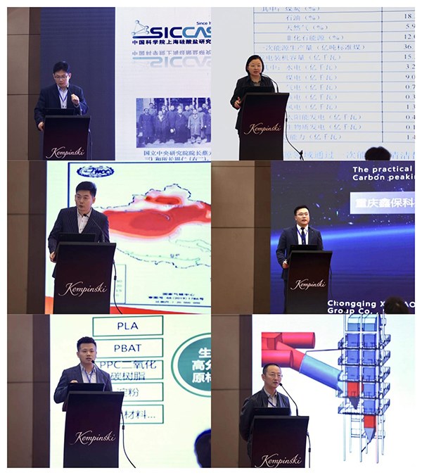 技术路演环节,中科院上海硅酸盐所科技产业处处长韩金铎、湖北光合生物科技有限公司总经理谢永磊、四川陆亨能源科技有限公司副总经理陈祥顺从空气及污水治理、发电、储能、节能等领域双碳技术特点、性能指标、应用场景等方面进行了项目推介。