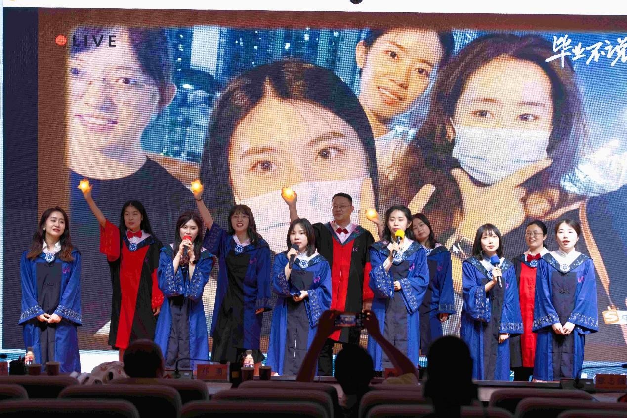 硕士生导师唐川献上一首《倔强》,把祝福唱给大家。全体毕业生表演了诗朗诵《毕业扬帆正启航,争做时代追梦人》和歌曲串烧《刻在裂缝中的花儿》。在学硕士研究生表演小品《时间都去哪了》,并献上对师兄师姐的毕业祝福。