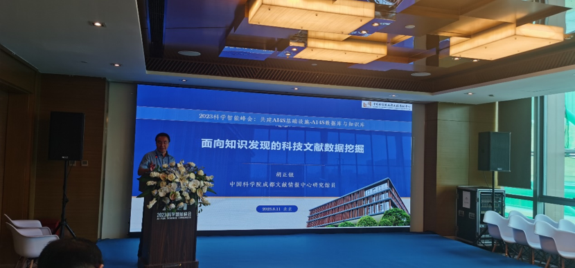 810-811日,中关村论坛系列活动2023科学智能峰会”AI for Science Summit)在北京举行。成都文献情报中心知识系统部主任胡正银研究馆员受邀在“共建AI for Science基础设施-AI4S数据库与知识库”论坛作题为《面向知识发现的科技文献数据挖掘》的报告。