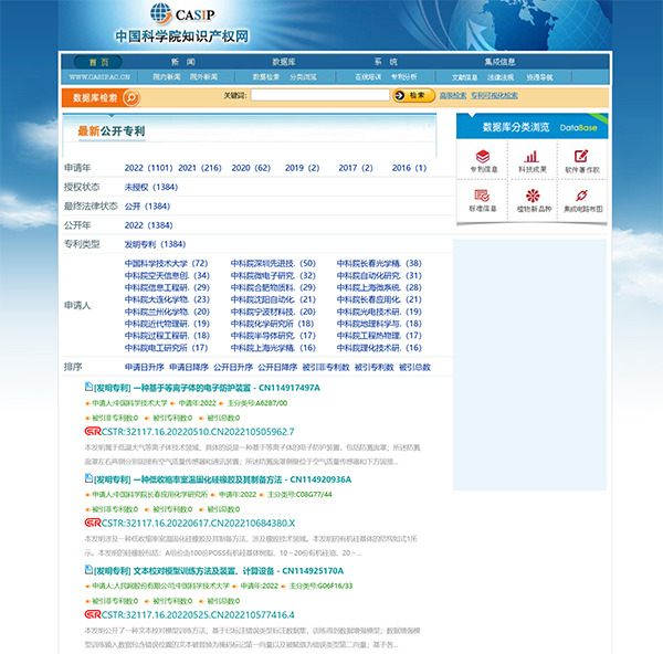 近日,中国科学院知识产权网(http://www.casip.ac.cn)负责管理的中科院专利数据整体接入科技资源标识CSTR(Science and Technology Resource Identification),成为首个接入CSTR的专利数据集。