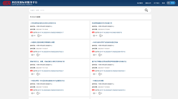 CSTR科技资源标识服务平台(https://www.cstr.cn)依据国家标准GB/T 32843-2016《科技资源标识》建设,面向全球科学数据、学术论文、科研机构、科研人员、科研仪器、专利等科技资源提供唯一标识服务,是我国国家标准服务全球科技资源的重要载体,是推动我国标准国际互认的全球通用基础服务平台。CSTR已成为国际互联网数字分配机构IANA认可的国际标准协议标识符之一,并在联合国粮食及农业组织、ORCID、Harvard Dataverse等获初步应用。截止目前,CSTR已接入科学数据、种质资源、学术论文、科研机构、科研人员、专利等多类型科技资源,提供资源总量、解析量、查询量、引用量等多维度数据分析,形成我国科技资源全面的数据服务。