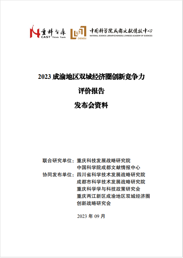 926日,由中国科学院成都文献情报中心与重庆科技发展战略研究院共同研究的《2023成渝地区双城经济圈创新竞争力评价报告》(以下简称《报告》)在成渝地区双城经济圈科技智库联盟成立大会上发布。