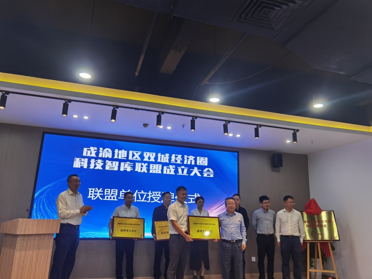 成渝地区双城经济圈科技智库联盟当日成立,中国科学院成都文献情报中心作为副理事长单位将与成员单位联合承担国家重大研究任务,特别是为国家推动成渝地区双城经济圈建设提供高质量战略决策咨询服务。