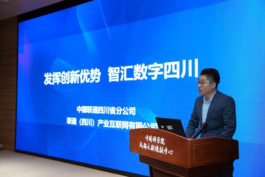 中国联通四川产业互联网有限公司徐东阳总监作“发挥创新优势,智汇数字四川”报告。