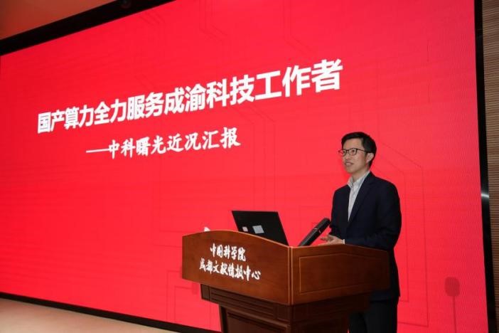 曙光信息产业股份有限公司四川分公司周松柏经理作“国产算力全力服务成渝科技工作者”报告。
