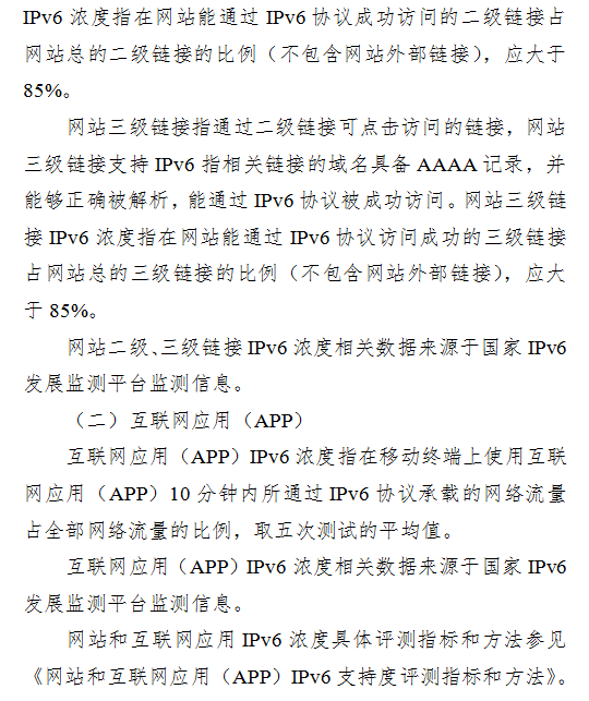 附件:IPv6改造相关指标和测试方法说明