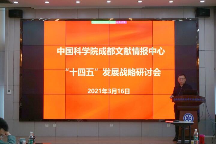 为全面落实中国科学院党组对院文献情报中心系统的要求,围绕全院文献情报系统统筹发展的部署,做好“十四五”时期的谋篇布局,完成“十四五”发展规划编制,2021年3月16日,成都文献情报中心召开“十四五”发展战略研讨会。研讨会围绕进一步梳理发展形势、凝聚发展共识、调动发展资源、强化平台思维、提高服务能力、提升产出影响等方面展开。中心领导、党委委员、部门负责人、支部书记、团队负责人、高级职称人员等40余人现场参会,其他职工视频参会。中心主任邓勇主持会议。