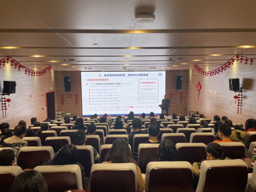 在大会总结环节,邓勇对中心年度重要进展和亮点作了进一步阐释,并代表中心党政领导班子向中心全体职工及家属、离退休人员和研究生致以新春的问候。